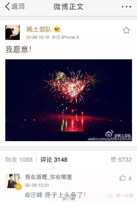 汪峰在章子怡生日派對上浪漫求婚成功。飛行器空降9.15克拉英國鉆戒,煙花相伴,王力宏、那英、郭敬明等好友見證。章子怡激動落淚說“愿意”。汪峰則向其表白:“如果我們都老了,我還能照顧你!”