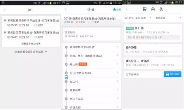 出行規劃。目前大部分地圖都可以做到反應實時交通情況,路線規劃以及交通工具推薦。在百度地圖中,搜索路線還可以看到你需要乘坐的公交車目前離你最近的站點還有幾個站。
