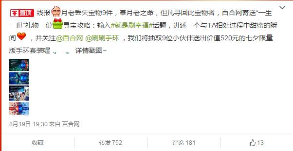 七夕對于各家婚戀網站來說不亞于”雙十一“之于電商,是各家比拼最激烈的時候。百合網在七夕就在微博上推出了秀恩愛手環和積攢活動,相對于各家熱鬧拼腦洞的七夕節活動,百合網顯得太“冷清”了。