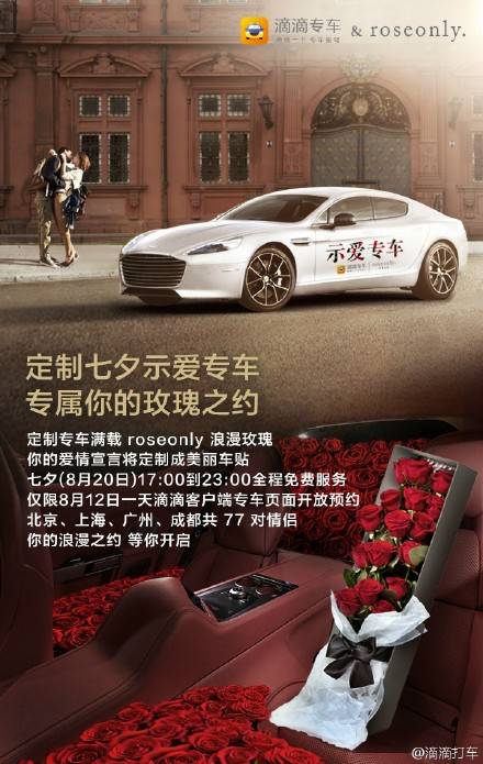 滴滴不僅和各家進行了七夕的聯合推廣活動,還根據地域的不同推出了自己的七夕特別活動。