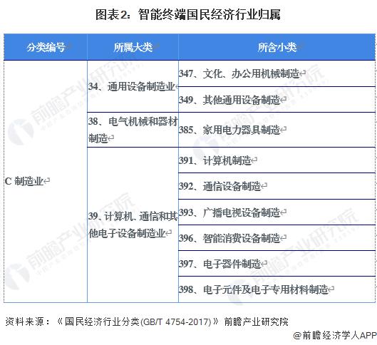 當前在《國民經濟行業分類》并沒有直接針對智能終端的定義分類,因此根據智能終端概念和分類,結合《國民經濟行業分類》 ( GB/T4754-2017 ) ,智能終端制造行業涉及制造業中的 3 個大類和多個小類。