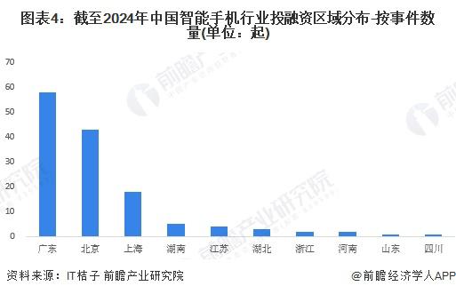 從行業(yè)企業(yè)融資區(qū)域來看,近年來全國智能手機行業(yè)投融資事件集中廣東、北京、上海、湖南、江蘇和湖北等省市,其中廣東發(fā)生投融資事件數(shù)量為 58 起,居全國首位。