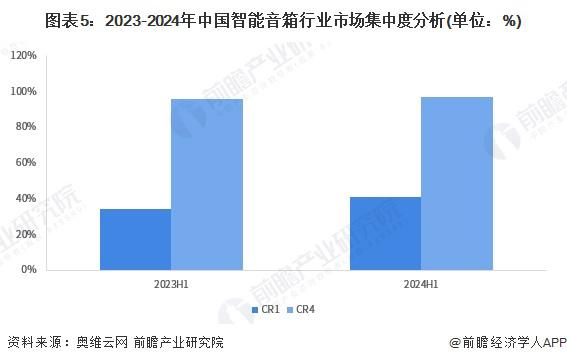 智能音箱是行業啟動期巨頭就進場的行業,市場集中度長期維持高寡占水平。目前,智能音箱市場競爭較激烈。2023 年上半年,行業前四品牌 ( CR4 ) 市場份額已達 96%,其中市場份額最大的品牌 ( CR1 ) 占比 34%; 到 2024 年上半年,CR4 進一步提高至 97%,而 CR1 提升至 41%。這一變化表明行業競爭格局逐漸向頭部品牌集中,市場份額持續向領先企業傾斜,中小品牌的生存空間進一步壓縮。