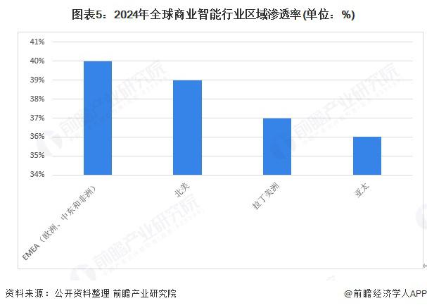 本文核心數據:全球商業智能平均應用滲透率 ; 全球商業智能行業區域市場滲透率