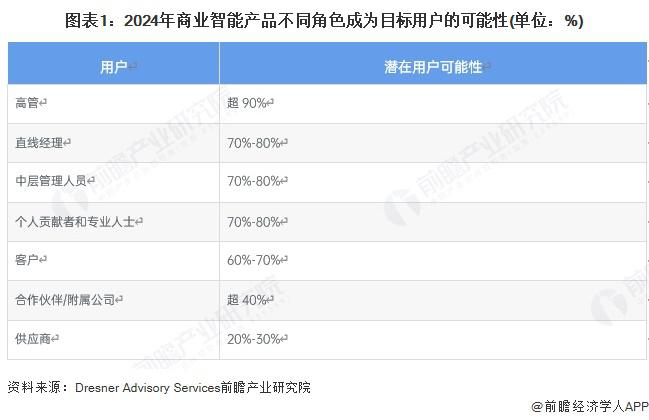 2024 年,高管團隊、直線經理、中層管理人員以及個人貢獻者和專業人士仍然是 BI 的重點用戶,相對而言,合作伙伴 / 附屬公司以及供應商成為 BI 潛在用戶的可能性較弱。