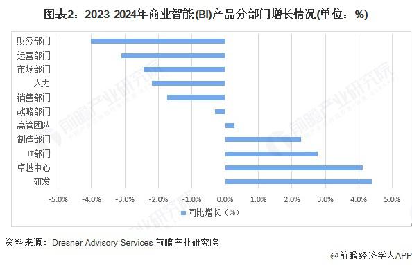 2023-2024 年度商業智能市場增長更快的部門包括研發部門、卓越中心以 IT 部門等,其中使用 BI 的研發部門用戶增長了 4.4%。